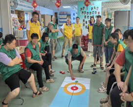 活动当天,康园中心的活动室里早早洋溢着热闹的氛围。会员们刚一到场,就被学员们热情的目光包围。在简单的问候后,地冰壶互动游戏正式拉开。考虑到学员们的接受度,社区工作人员先是用通俗的语言讲解游戏规则,手把手指导握壶姿势与发力技巧,耐心纠正每一个细节。随着“开始”的声音响起,学员与会员们自由组队,一场欢乐的比赛就此展开。冰壶在光滑的地面上缓缓滑行,大家紧盯壶的轨迹,时而因精准的投掷欢呼雀跃,时而为小小的偏差互相鼓励。平日里略显腼腆的学员们,在游戏中逐渐放开手脚,脸上的笑容愈发灿烂。按照活动约定,比赛失利的队伍要接受“唱歌惩罚”,可这“惩罚”却成了全场最欢乐的环节,歌声与掌声交织,这一刻,没有陌生与距离,只有彼此陪伴的温暖。