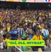赛中,现场球迷高声齐喊未能入选本场大名单的内马尔的名字。